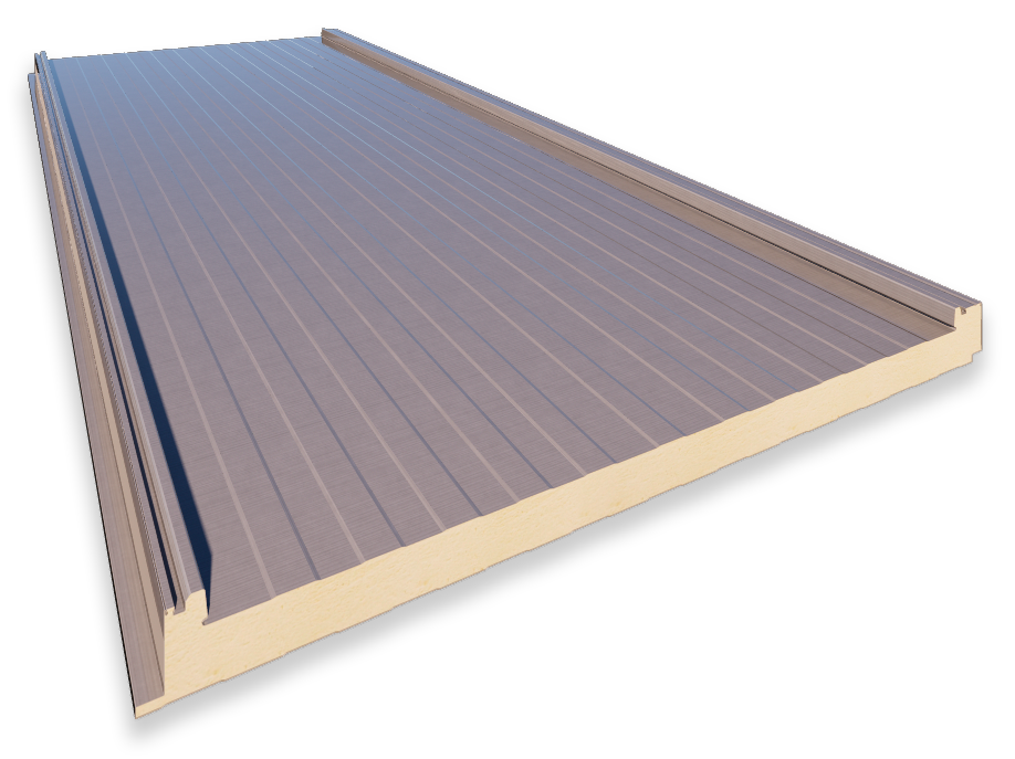Panel designed for sloping roofs with a minimum incline of 7%. Its hidden bolt-on system (flashing) guarantees water tightness, while providing the system with a modern, functional appearance. Its profile combines perfectly with excellent mechanical properties with a minimum-ribbed finish.