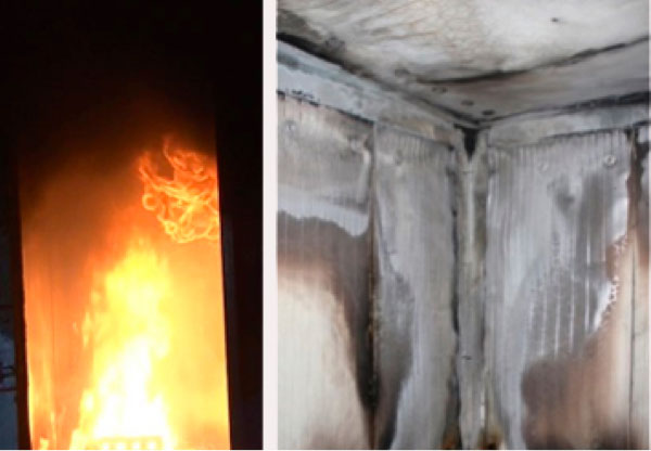Se pone a prueba el comportamiento del material ensayado ante la acción del fuego a través de la realización de diferentes pruebas. La más destacada es la denominada ROOM TEST UBC 26-3.